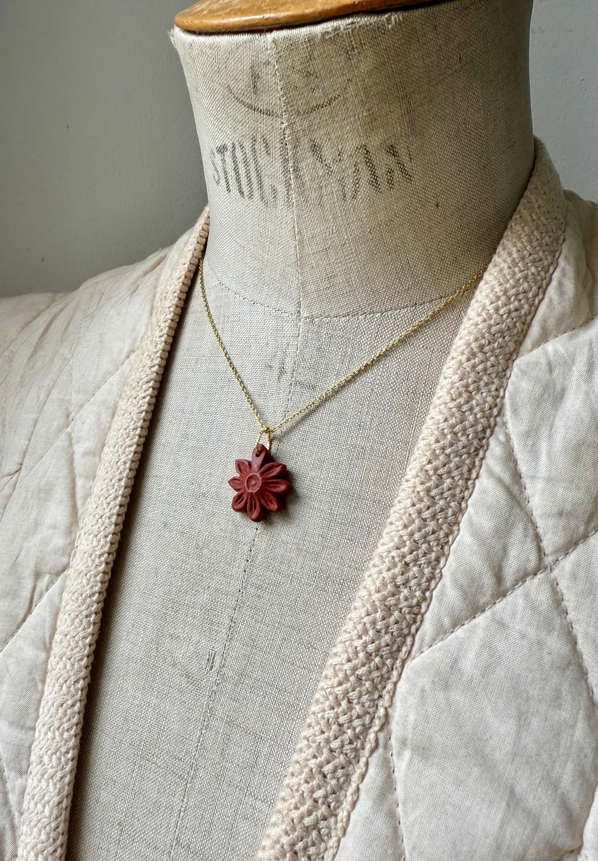 Amulettes graine représentant une anis étoilée , en hommage aux jardins d’épices et aux terres cuites grecques croisées sur ma route. Vous pourrez la porter seule ou en accumulation, sur chaîne ou sur cordon .