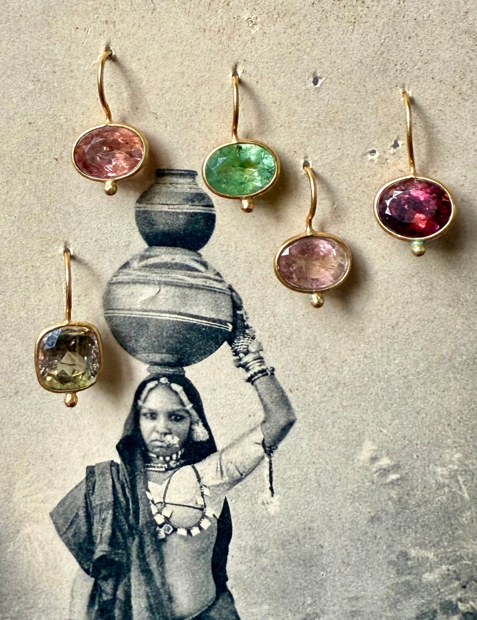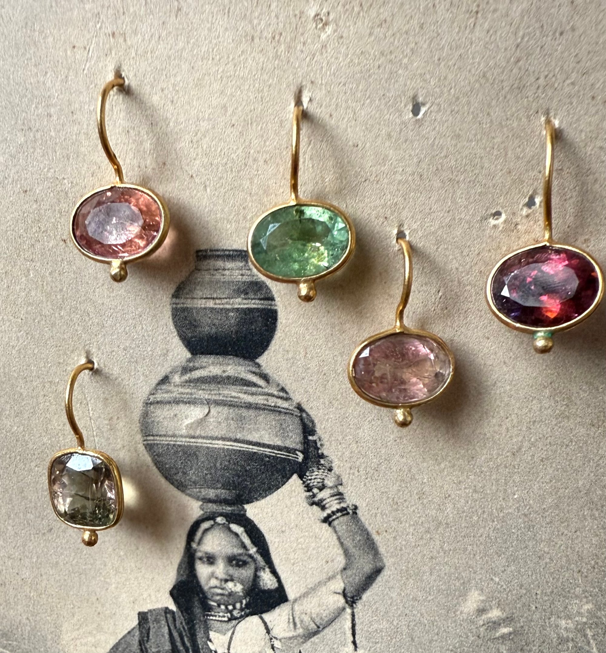 TAJ est une Mono boucle vendue à l’unité , composée d’une très belle tourmaline facettée , à collectionner et à porter avec vos autres boucles Bazarine . À vous de choisir votre couleur et composer votre paire dépareillée.
