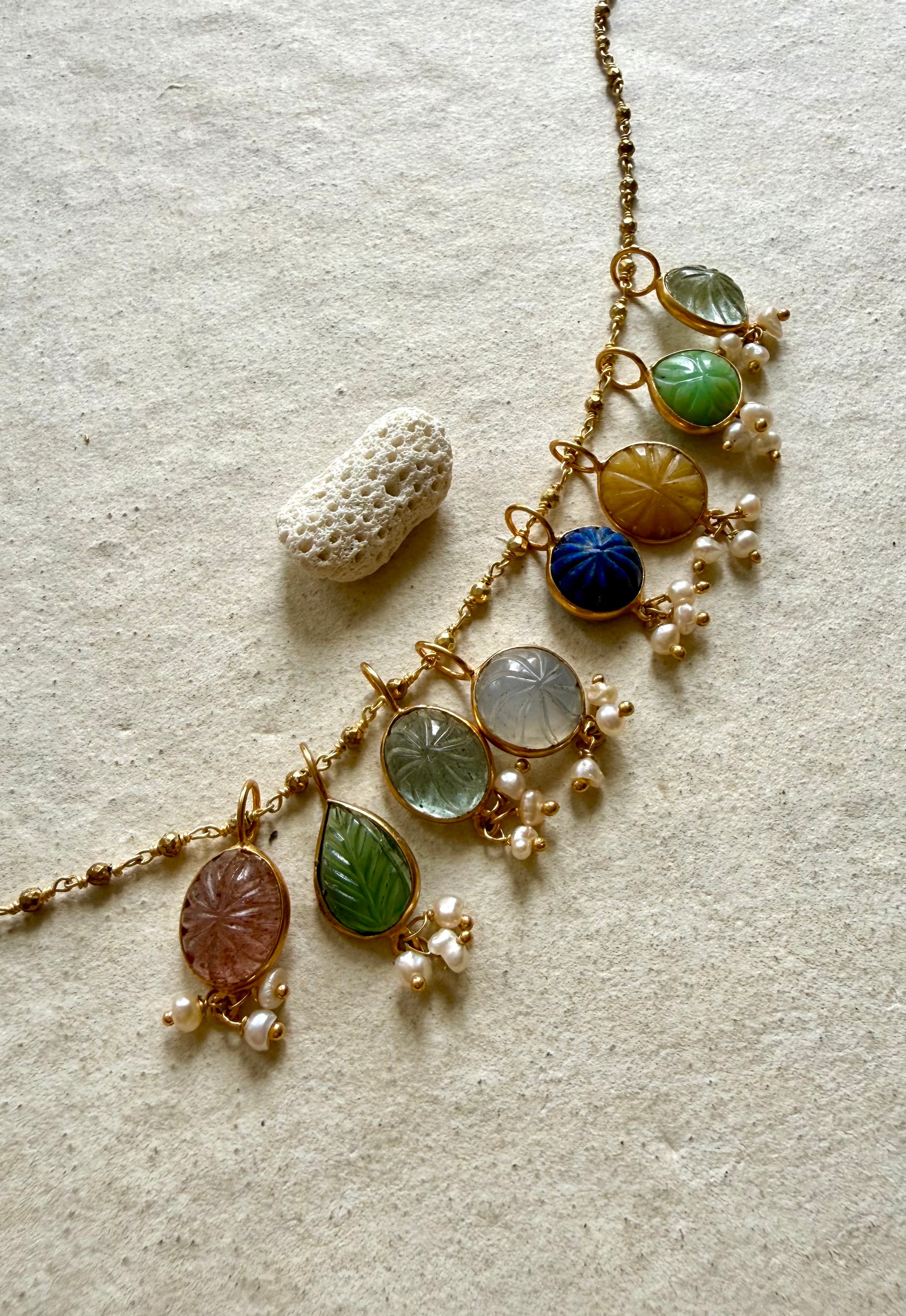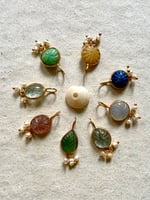 Pendentifs en pierres gravées mains , avec une pampilles de 3 perles fines , à glisser sur vos chaînes pour accompagner vos amulettes !