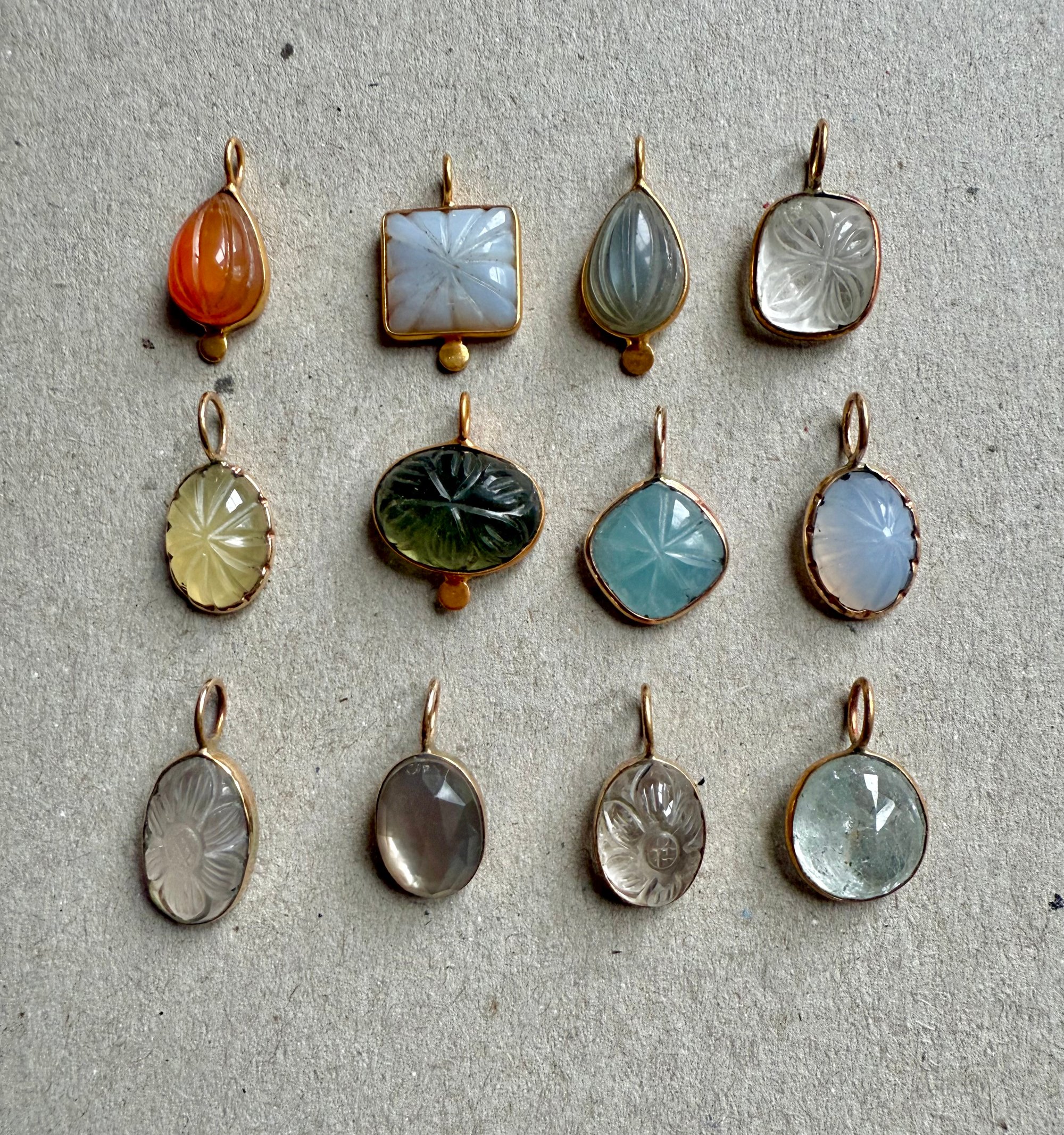 Pendentifs en pierres gravées mains , à glisser sur vos chaînes pour accompagner vos amulettes !