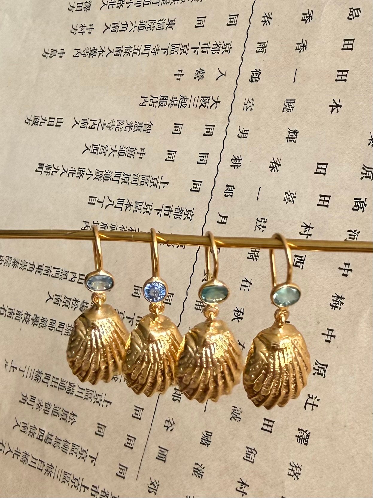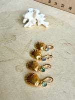C’est une boucle unique réalisée à partir petit coquillage ramassé sur une plage de la mer d’Andaman, il est précieux et symbolique. Il a été réalisé à partir d’un moule et fondu en laiton plaqué or . Il est surmonté d’une très belle tourmaline facettée et lumineuse . La boucles est vendue à l’unité et vous pourrez l’accompagner d’une autre boucle de la collection, comme les boucles BHOTIS par exemple .