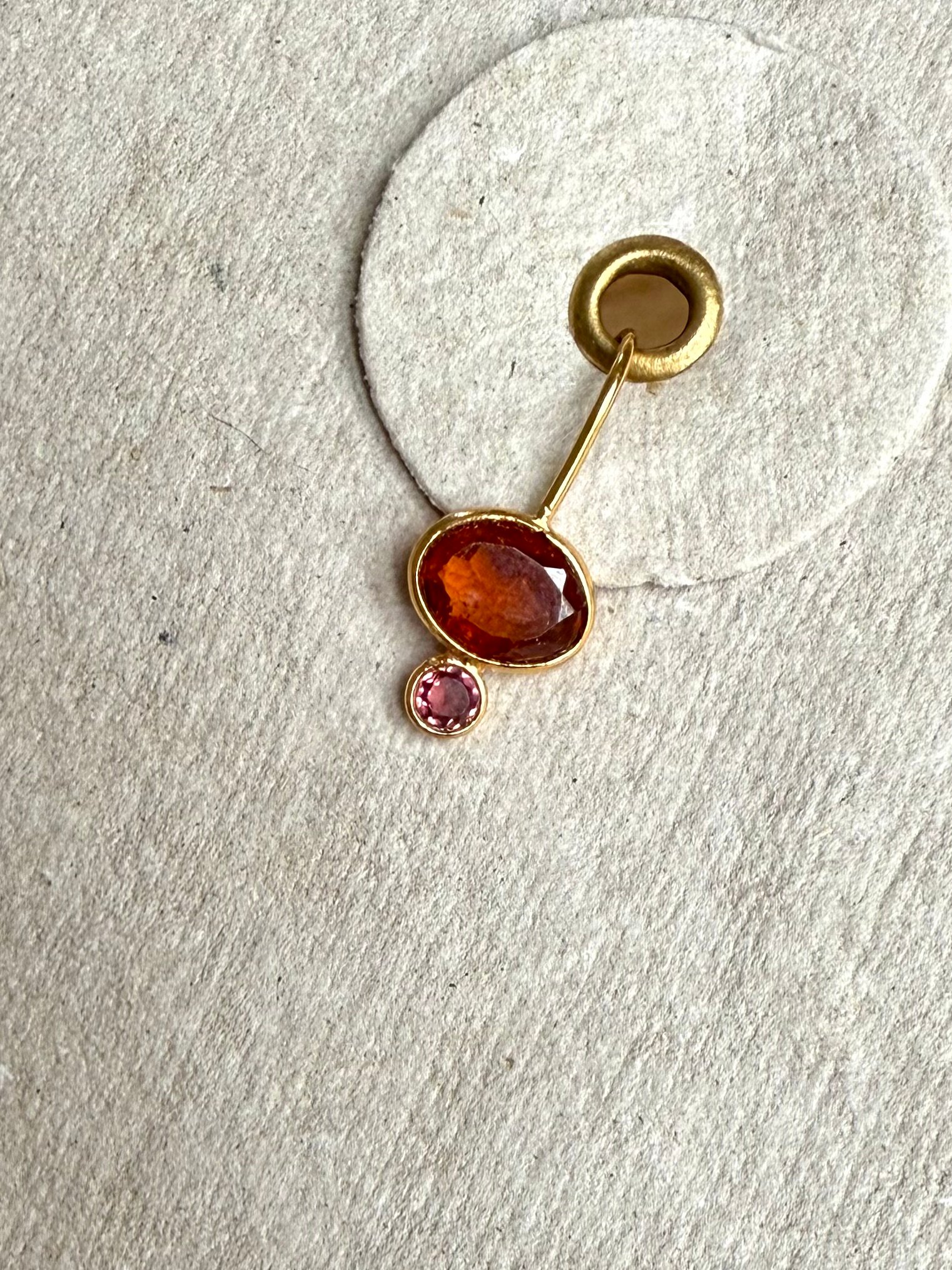Boucle d’oreille en pierres fines , tourmalines et petits saphirs , vendues à l’unité .