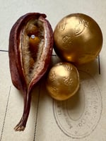 Voici des boutons anciens chinés en Thaïlande, gravés de petites fleurs . Ils sont en fer blanc que j’ai fait brosser et dorer à l’or 3 microns. À porter avec un plus gros bouton ou bien avec vos amulettes.