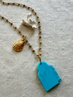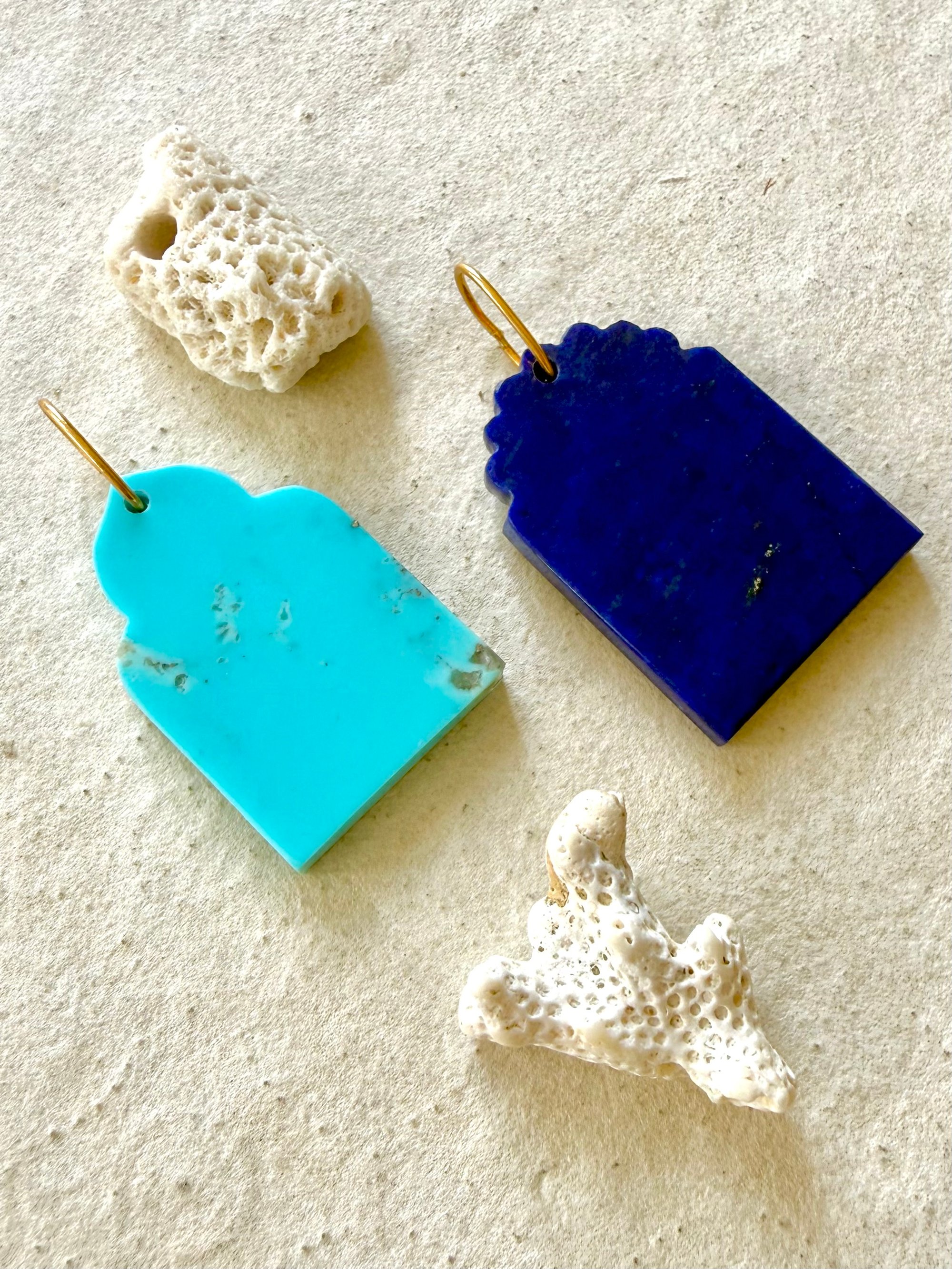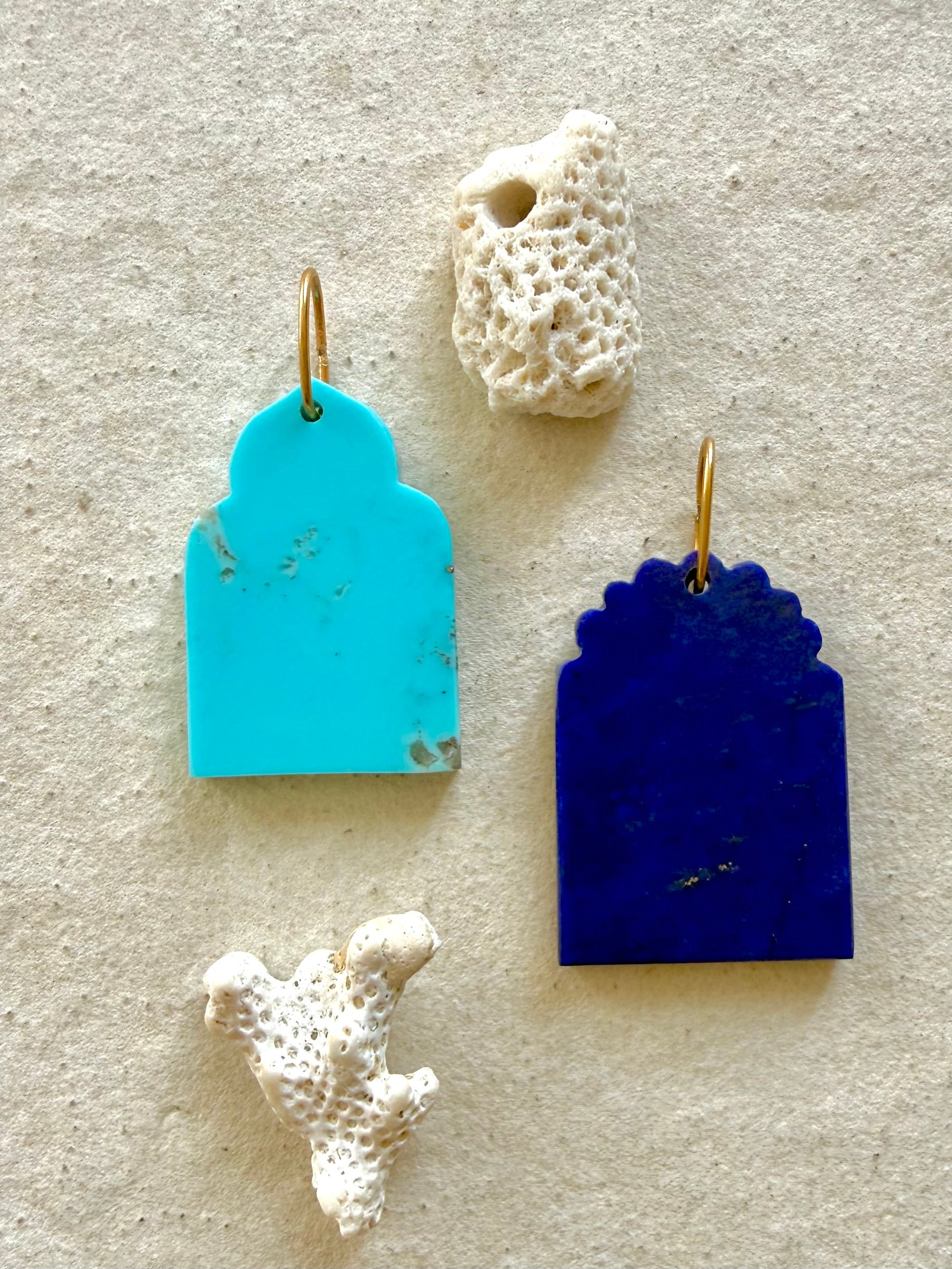 Médaillons temple en turquoise naturelle bleue ou lapis lazuli avec son anneau haut pour les glisser sur vos chaînes !