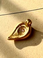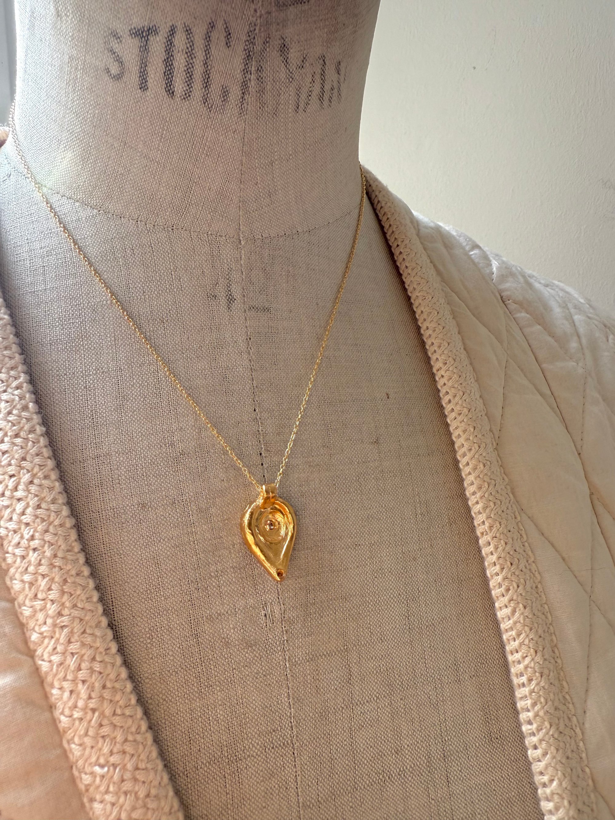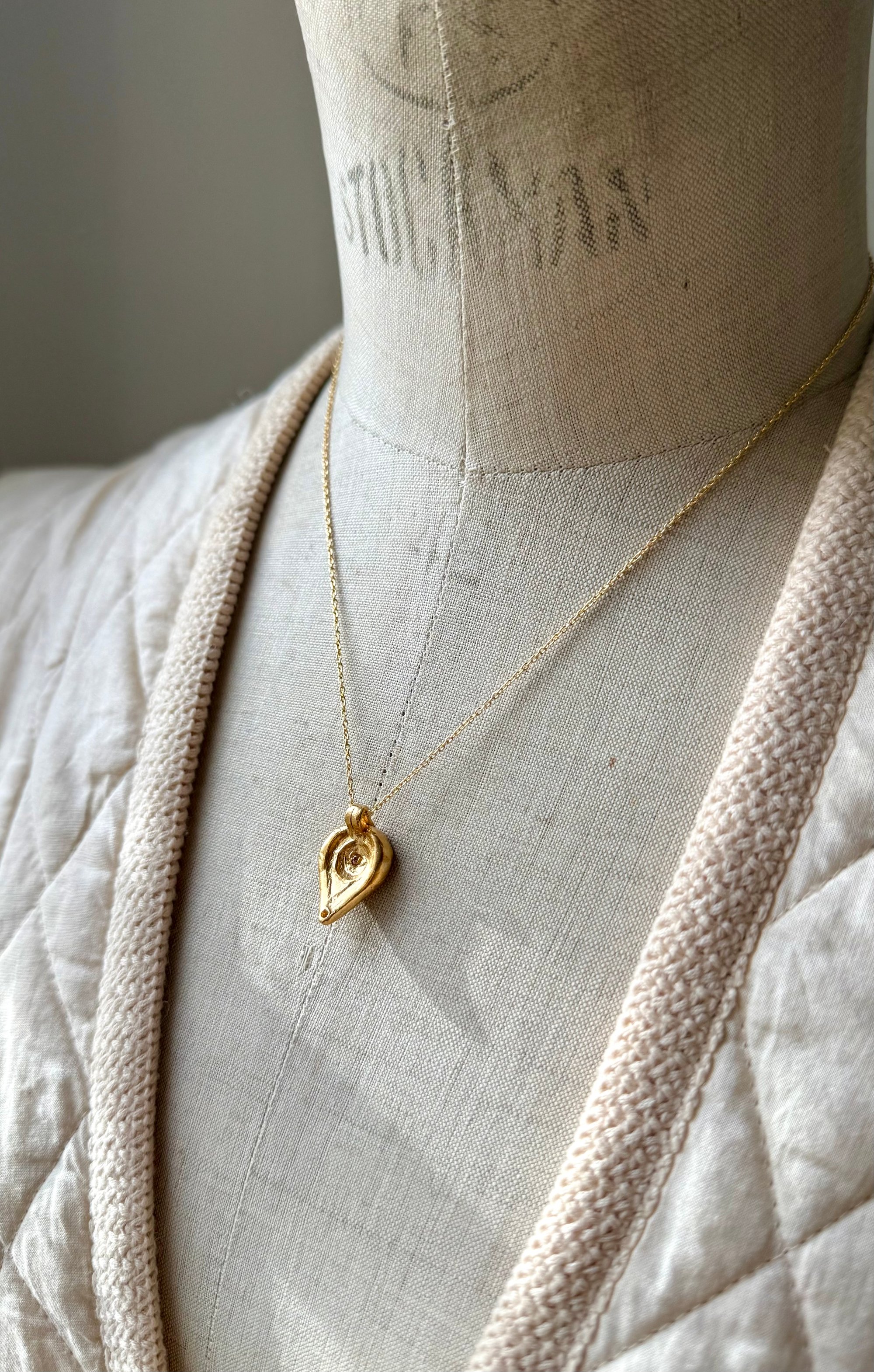 Cette petite Diya a été sculptée par mes soins, et c’est une belle symbolique de protection à porter. En son cœur est serti un brillant champagne, symbole de la flamme.