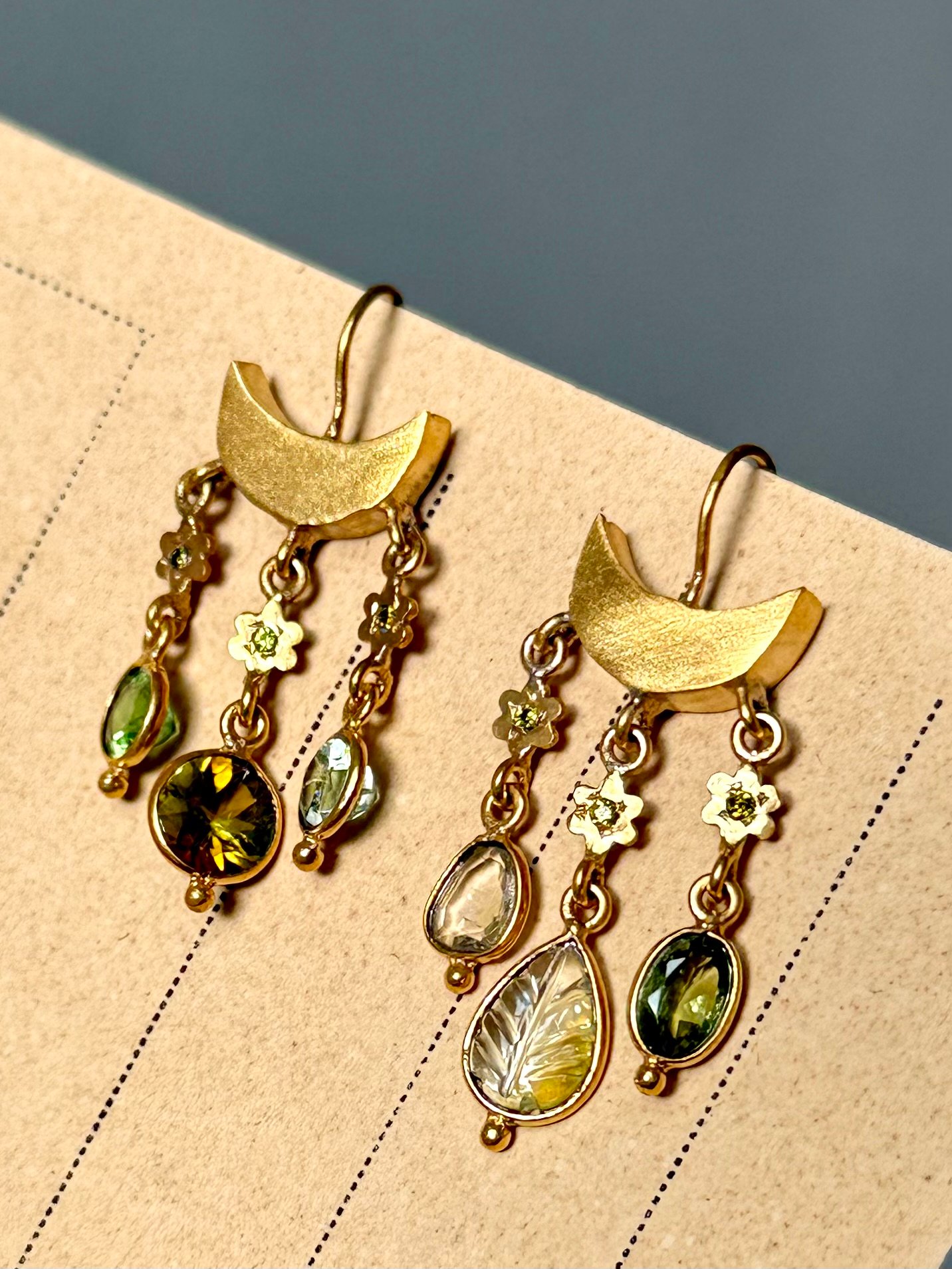 ( saphirs et tourmalines) de très belle qualités, choisies et assemblées harmonieusement. Les boucles sont vendues à l’unité mais je vous les présenté par deux dans une belles harmonie colorée si vous souhaitez composer votre paire .
