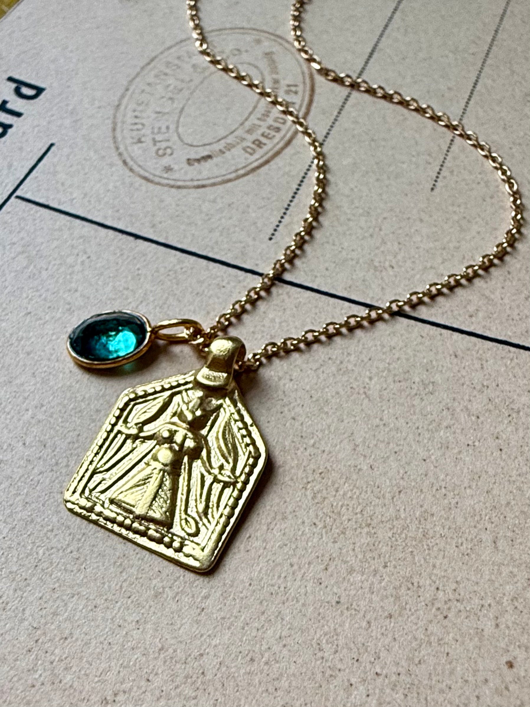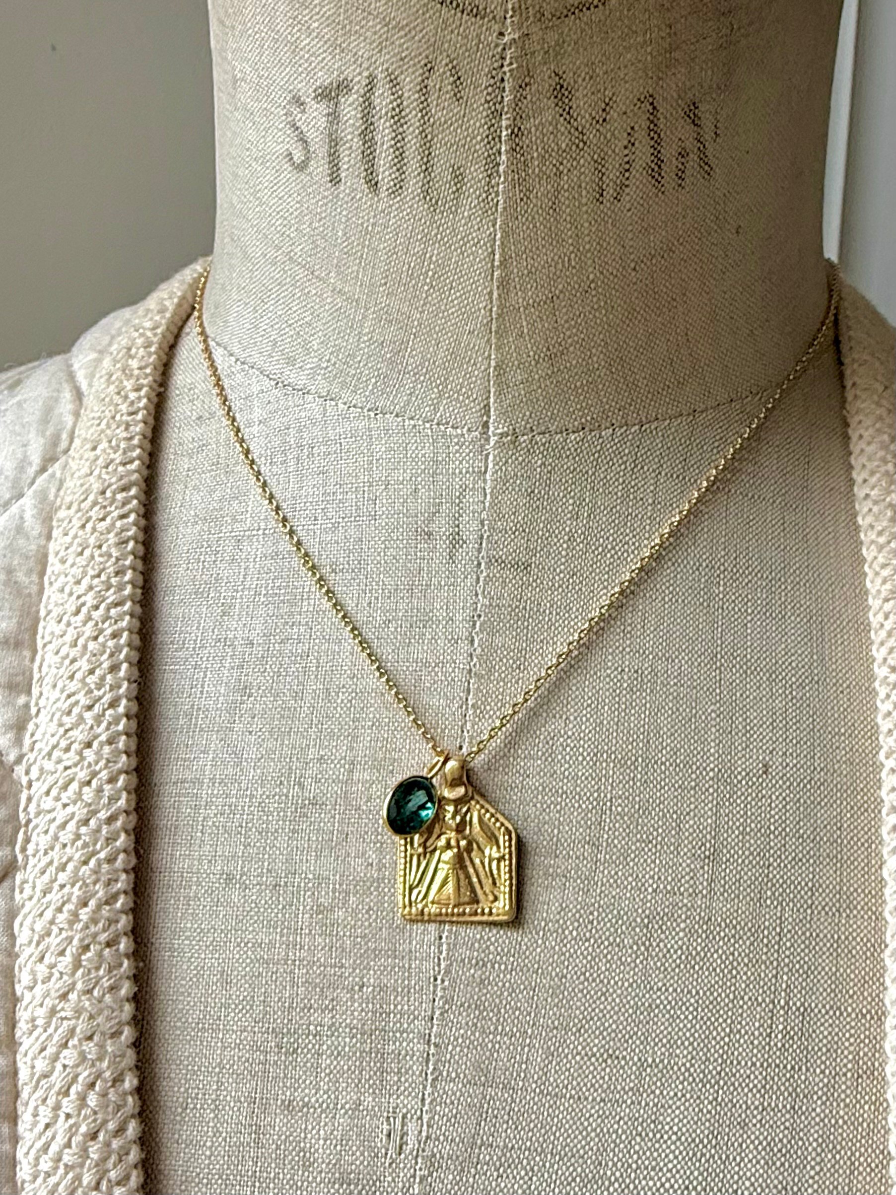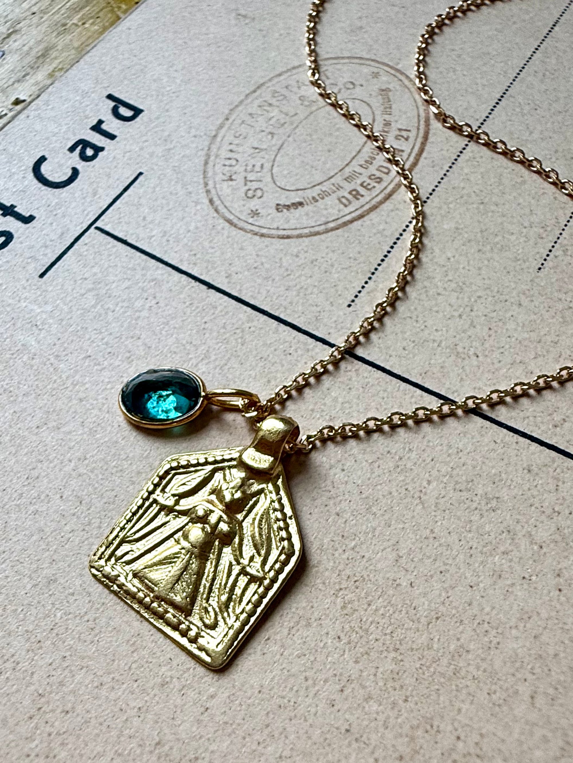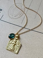Ce collier est composé d’une Amulette ancienne indienne représentant la déesse Lakshmi et d’une tourmaline bleu paon .
