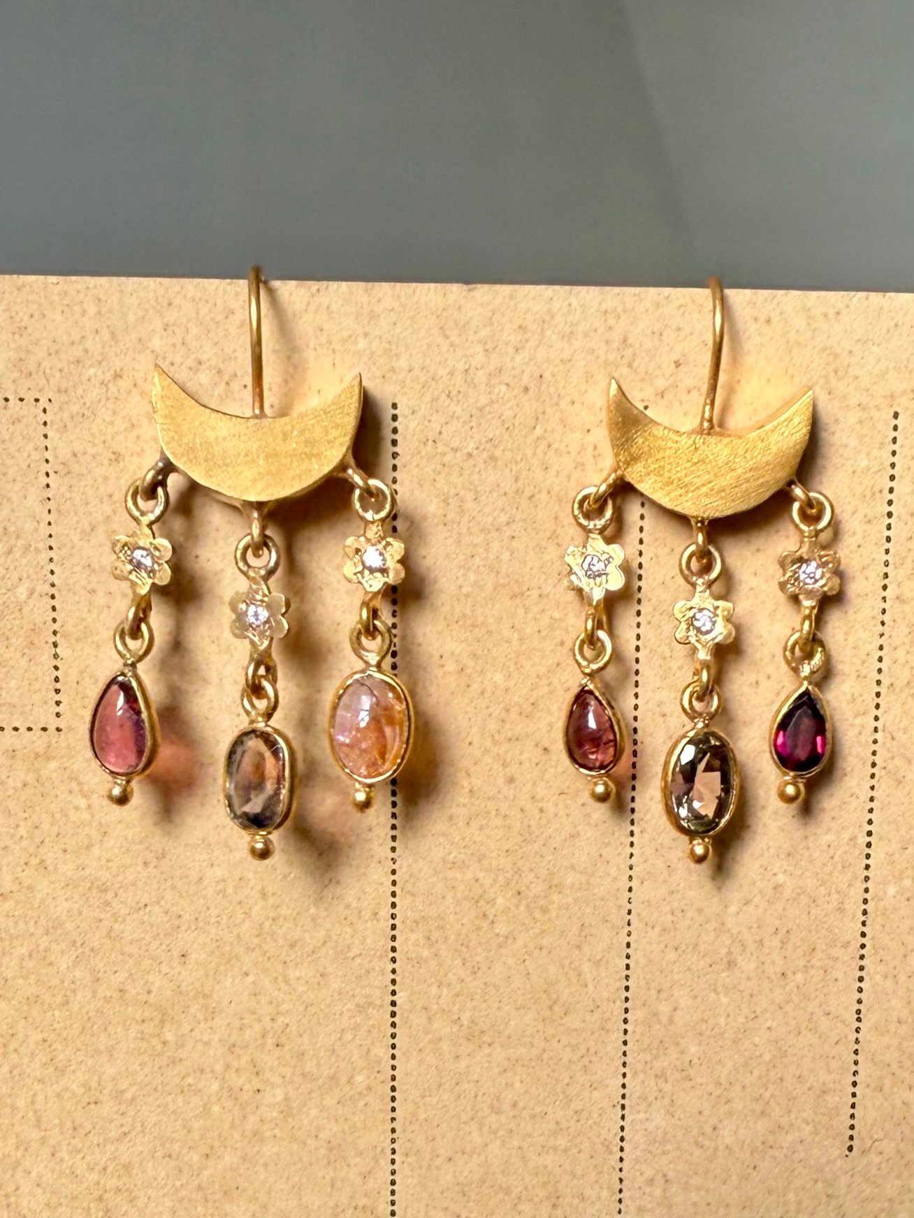 ( saphirs et tourmalines) de très belle qualités, choisies et assemblées harmonieusement. Les boucles sont vendues à l’unité mais je vous les présenté par deux dans une belles harmonie colorée si vous souhaitez composer votre paire .