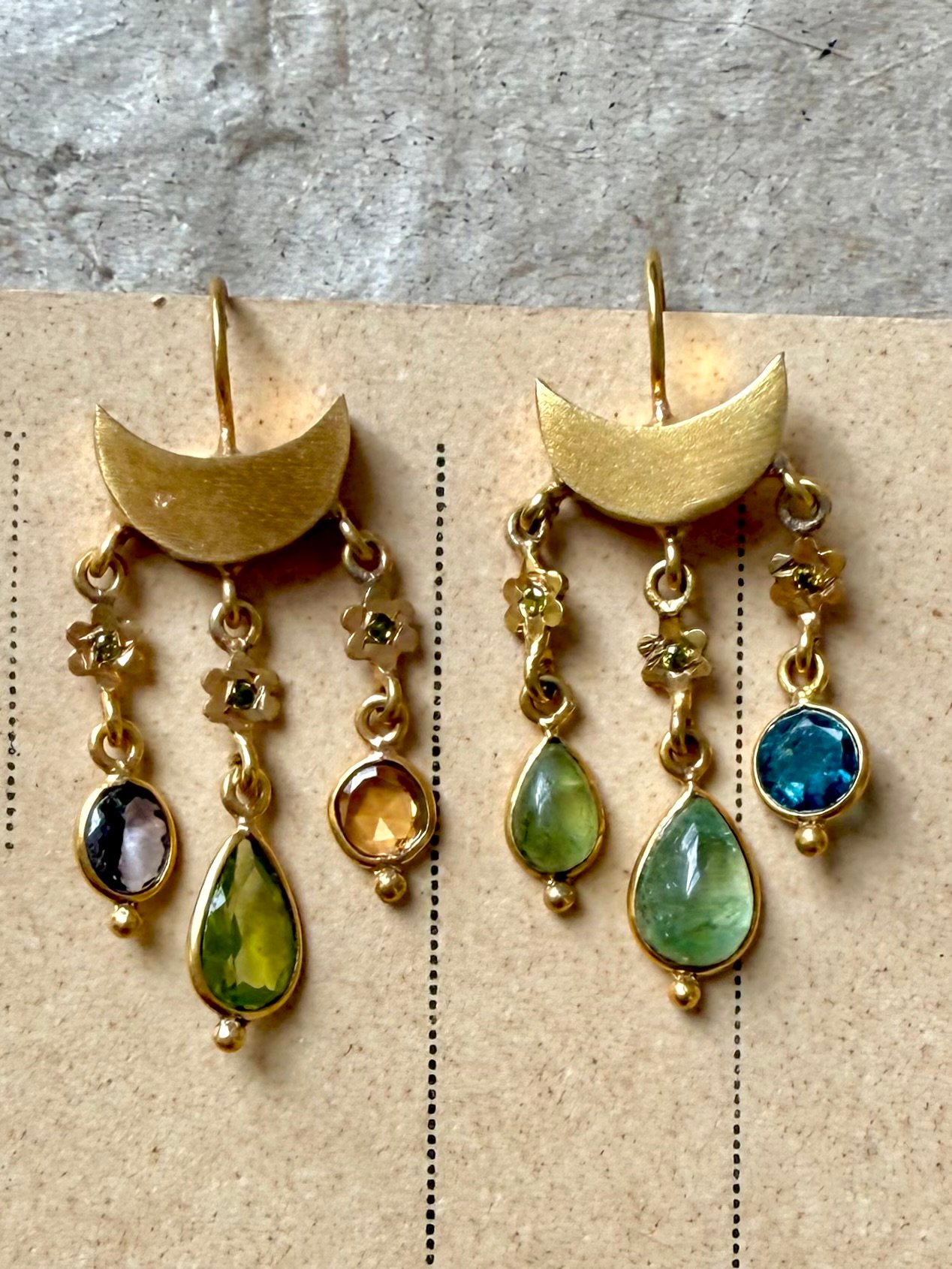 ( saphirs et tourmalines) de très belle qualités, choisies et assemblées harmonieusement. Les boucles sont vendues à l’unité mais je vous les présenté par deux dans une belles harmonie colorée si vous souhaitez composer votre paire .