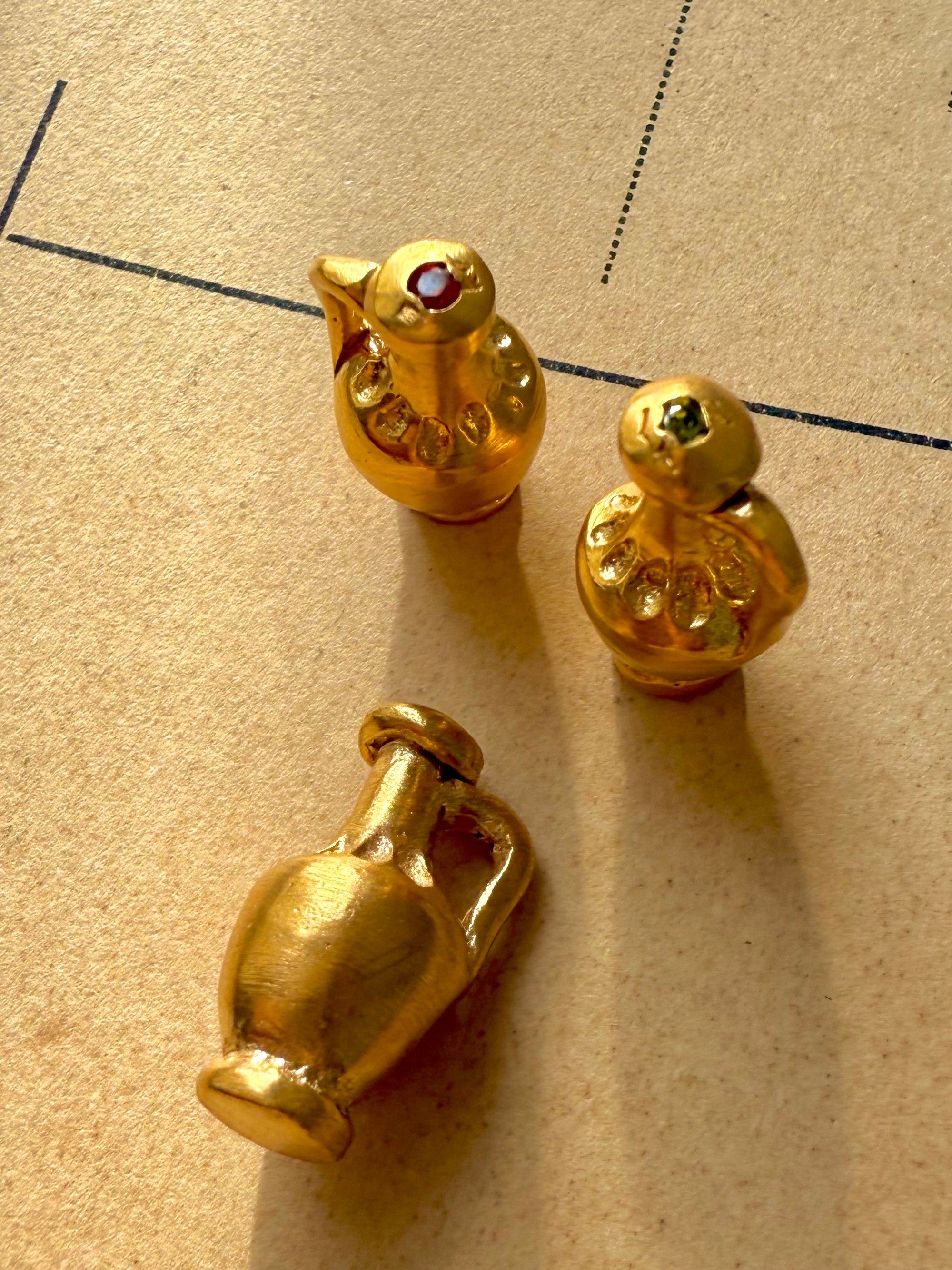 Inspirée par mes nombreuses visites de musées en Grèce, j’ai sculpté cette petite amphore pour la porter près de moi, comme une réminiscence du temps , du soleil et de la vie douce qu’elle porterait en elle. Une amphore qui contiendrait nos plus beaux souvenirs.