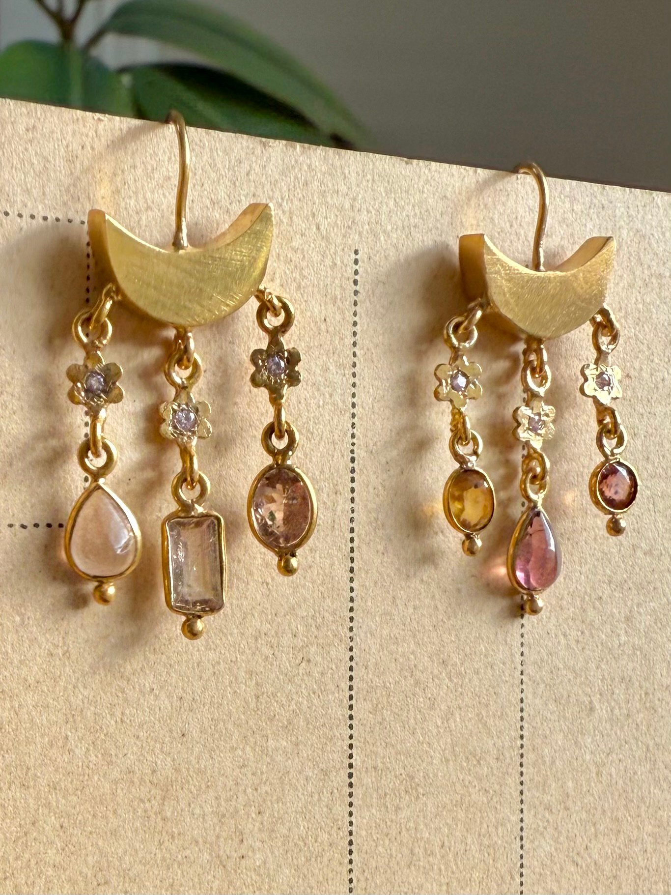 ( saphirs et tourmalines) de très belle qualités, choisies et assemblées harmonieusement. Les boucles sont vendues à l’unité mais je vous les présenté par deux dans une belles harmonie colorée si vous souhaitez composer votre paire .